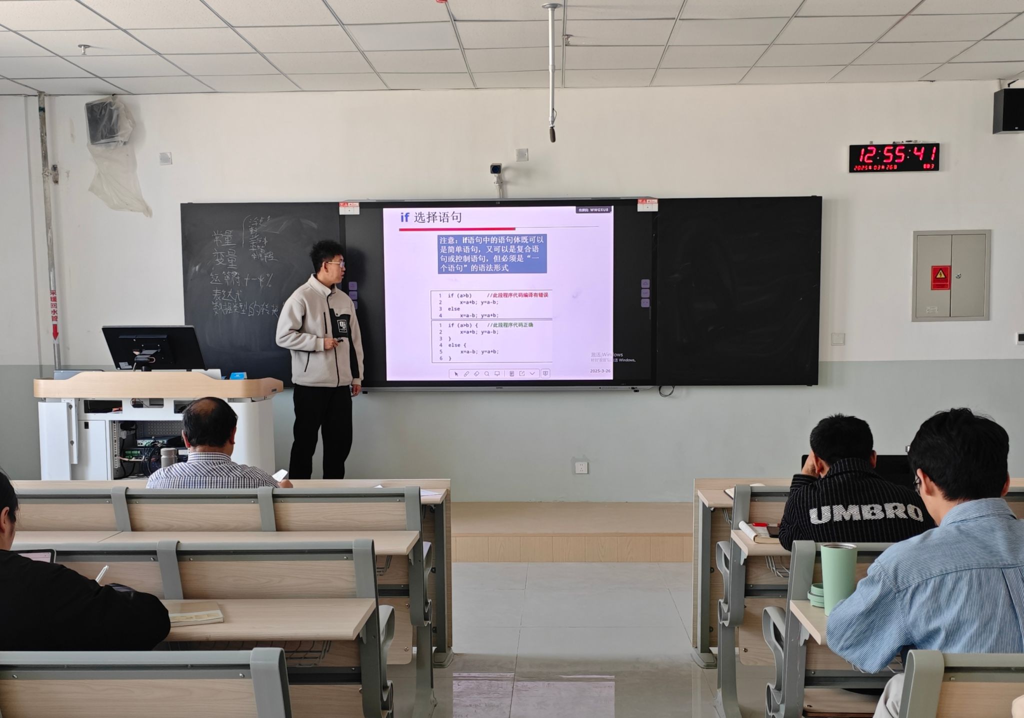 参赛教师首先结合拟主讲课程,系统阐述了教学设计的思路、理论依据及预期效果。随后,各位教师针对具体课程内容展开了精彩的教学展示。其中,杨钧仁老师系统地讲解如何定义和调用函数以模块化代码,使用数组存储和处理数据集合,并通过指针操作内存地址以实现高效的数据访问和传递。潘浩然老师通过生动地讲解将抽象的逻辑概念具象化,深入浅出地阐释了“运算符是处理数据的基础,然后分支结构控制流程,循环结构处理重复任务”。朱玉茹老师则以“单表查询,连接查询,嵌套查询”为主题,运用例题说明,帮助学生掌握SQL的核心查询技能,为数据库操作奠定逻辑思维和实践能力的基础。