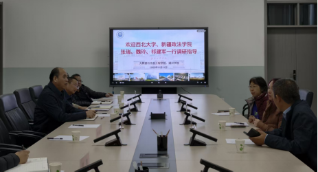 11月11日,西北大学数学学院院长张瑞、新疆政法学院信息网络安全学院院长祁建军一行3人莅临我院调研。调研会由大数据与与信息工程学院党委书记刘文晓主持,翟玉庆院长、高贤强教授、相关办公室负责人、及通识学院院长张华隆,数学教研部副主任赵鑫老师参会。