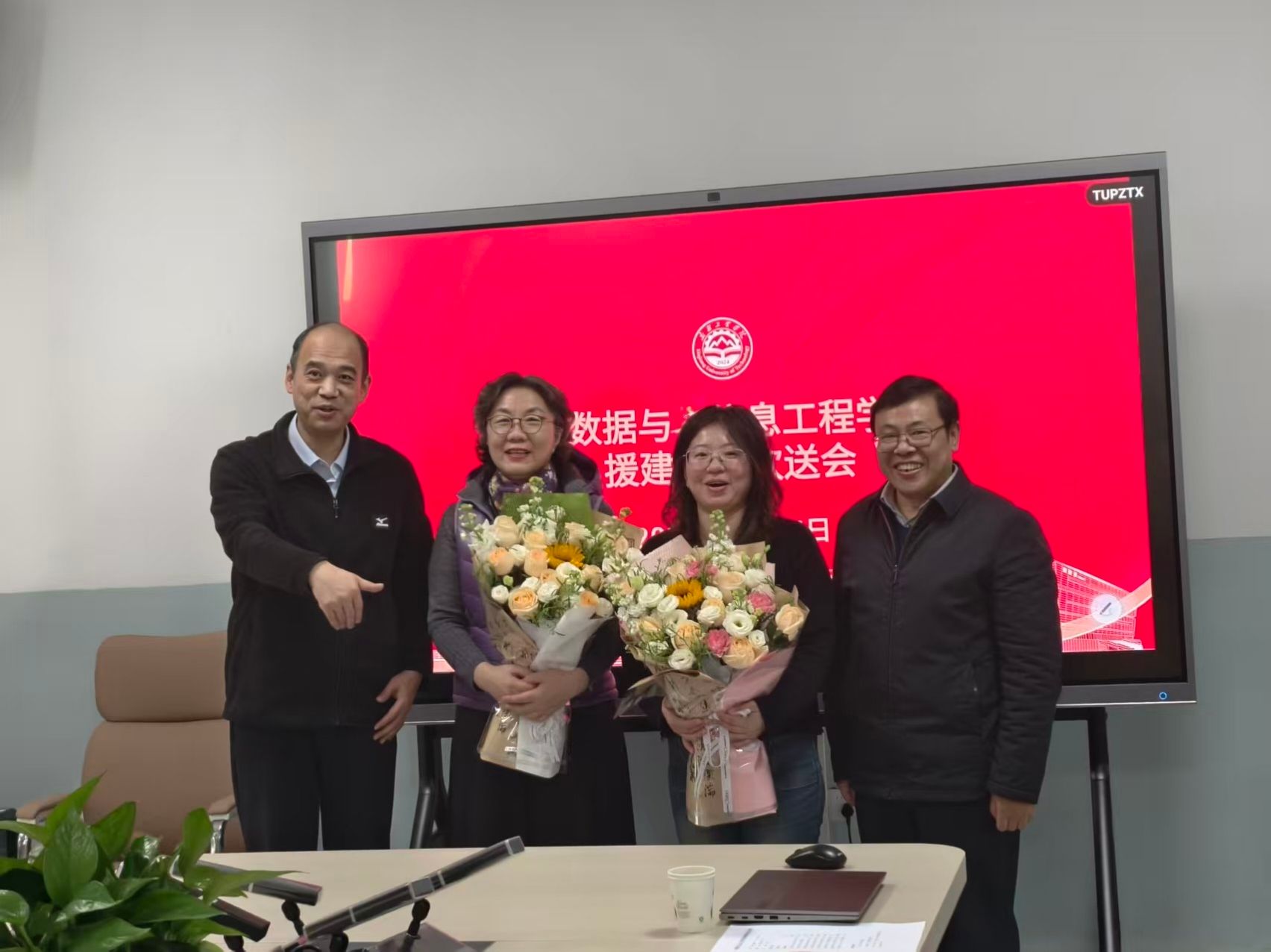 2026年1月15日下午,大数据与信息工程学院在A2-B-415会议室举行援建教师欢送会,感谢高克宁、李寒两位老师圆满完成援建任务,欢送两位老师返回原学校工作。学院党委书记刘文晓主持欢送会,院长翟玉庆、副院长杜小刚、学办主任薛裕峰、专业负责人刘晓鸿及青年教师代表等参加活动。